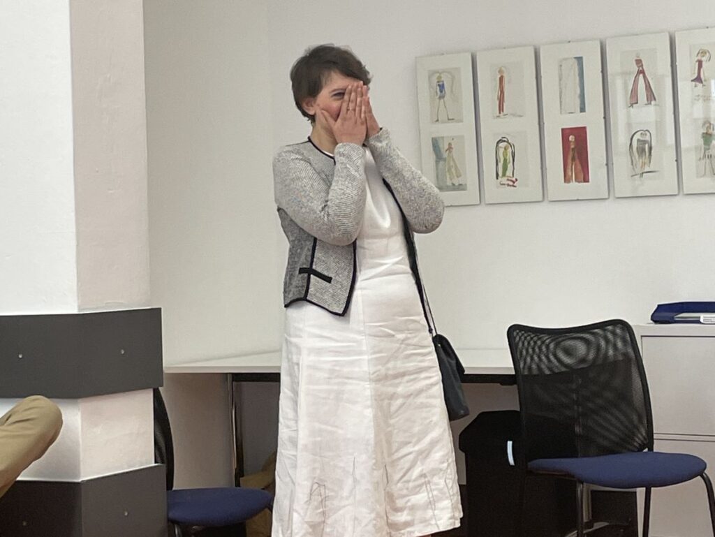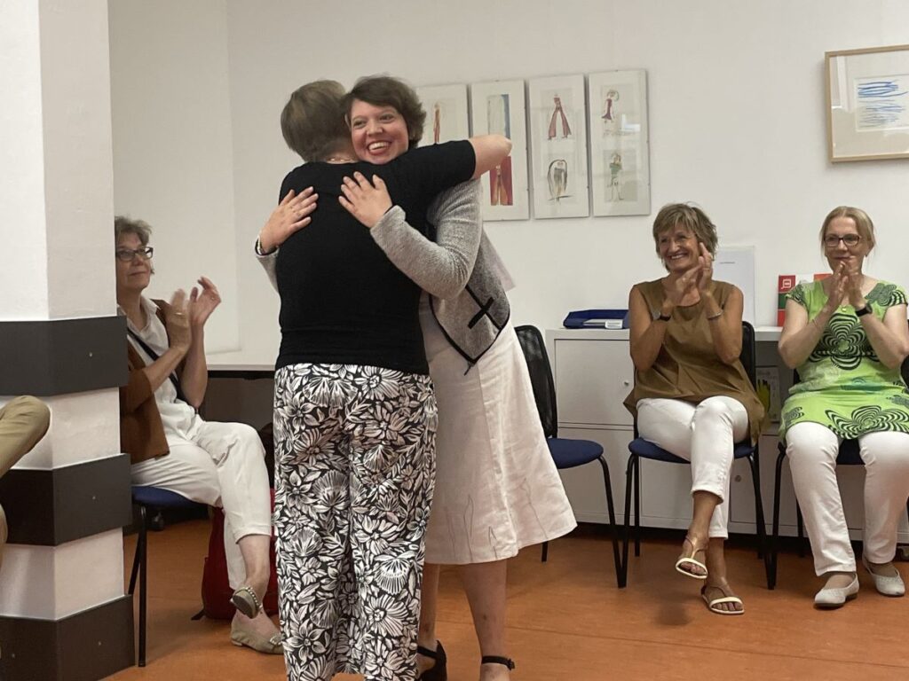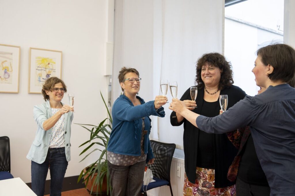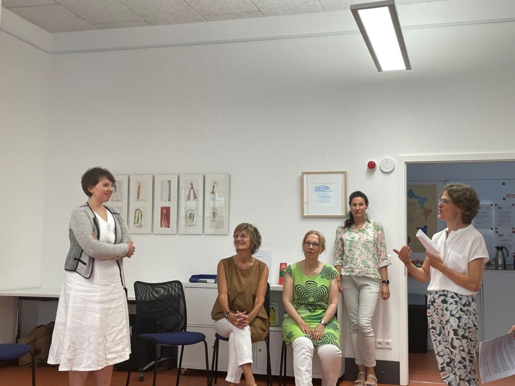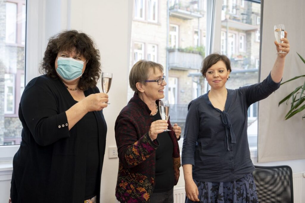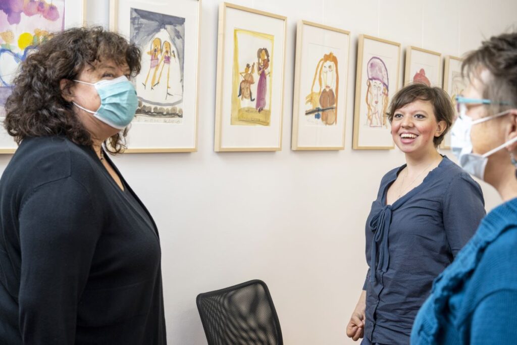 24. April 2023 Oktober 2021 bis Juli 2023: Einzelausstellung in Heidelberg: »Meine Träume« Musik machen mit ihrer Band, mit dem Bandbus unterwegs sein, in einer WG mit den Jungs zusammenwohnen – Helma Striffler malt sich in großformatigen Zeichnungen das Leben aus, von dem sie träumt. Mit dieser Ausstellung wurden die neuen Räume des Selbsthilfebüros der EUTB [Ergänzende Unabhängige Teilhabeberatung] eingeweiht – sie wurde aufgrund der Corona-Pandemie verlängert. Zur Finissage sprach die Stuttgarter Künstlerin Sabina Aurich über »Wirklichkeiten auf der Spur«. Die Fotos hat Felix Becker gemacht. Auszug aus „Aktuelles aus der Region“ Einladung Finissage 2023