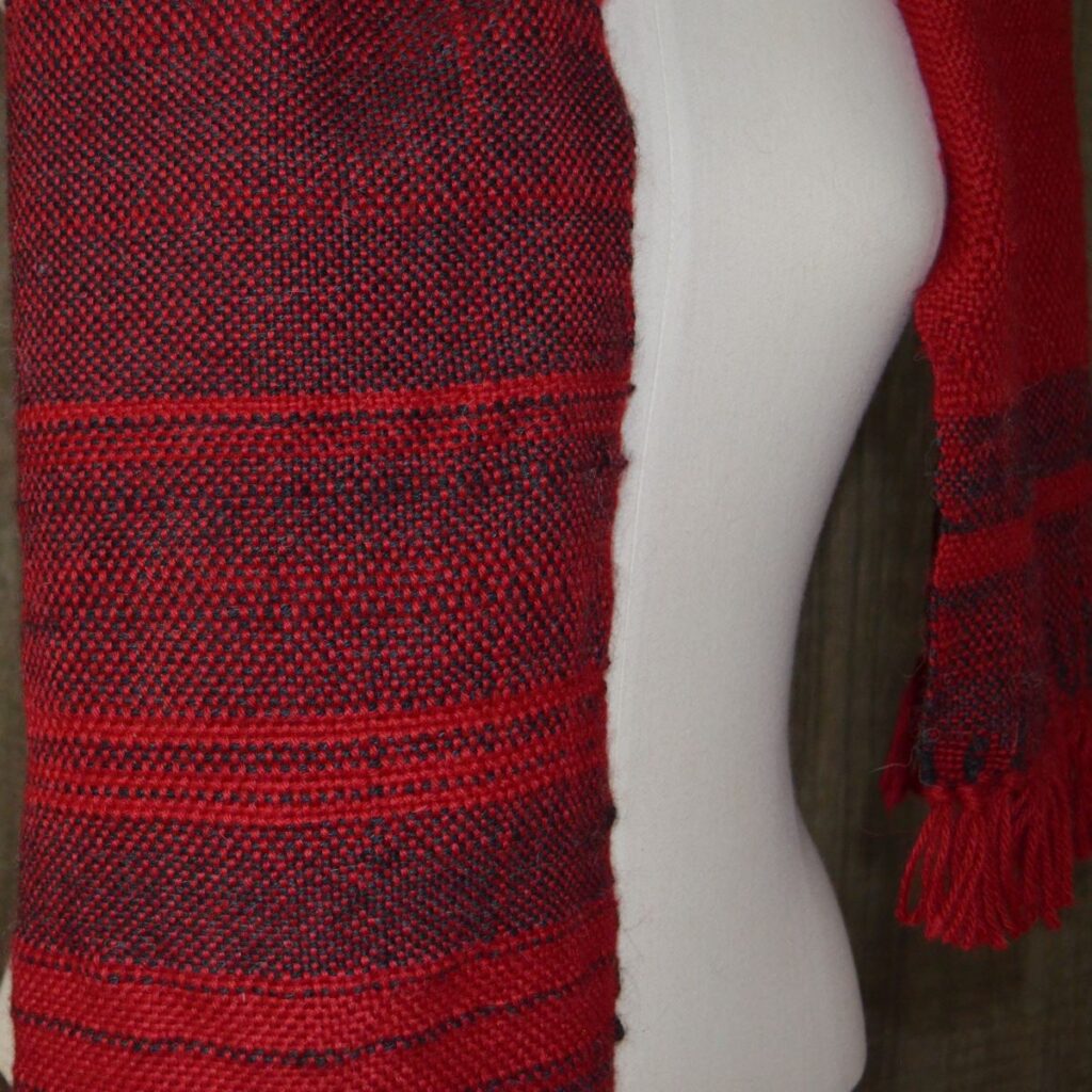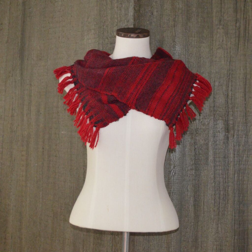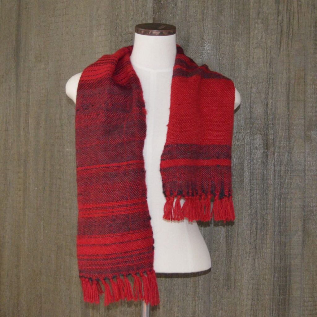 20. Juli 2025 Gewebter Wollschal Im Schuljahr 2024/25 hat Helma an der Waldorfschule Mannheim unter Anleitung von Petra Fischer diesen Schal gewebt. Er ist aus roter und grauer Wolle gestaltet.