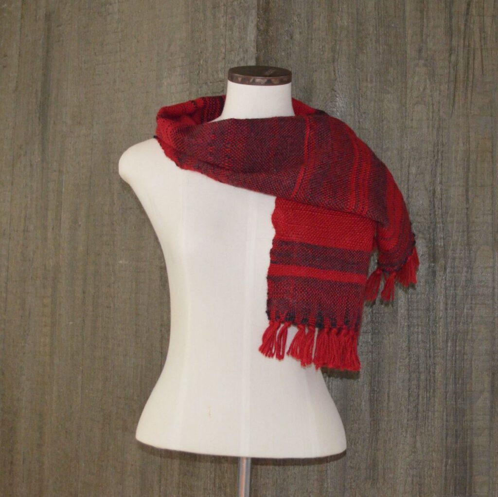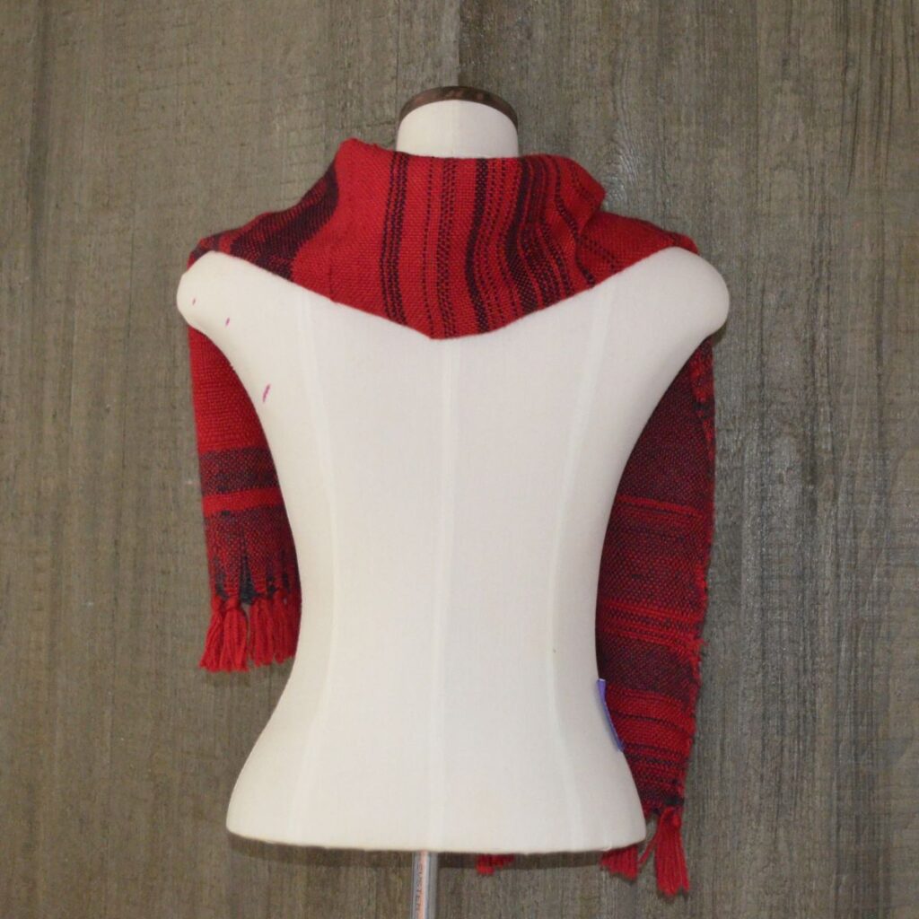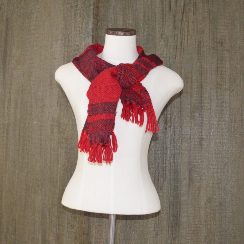 20. Juli 2025 Gewebter Wollschal Im Schuljahr 2024/25 hat Helma an der Waldorfschule Mannheim unter Anleitung von Petra Fischer diesen Schal gewebt. Er ist aus roter und grauer Wolle gestaltet.