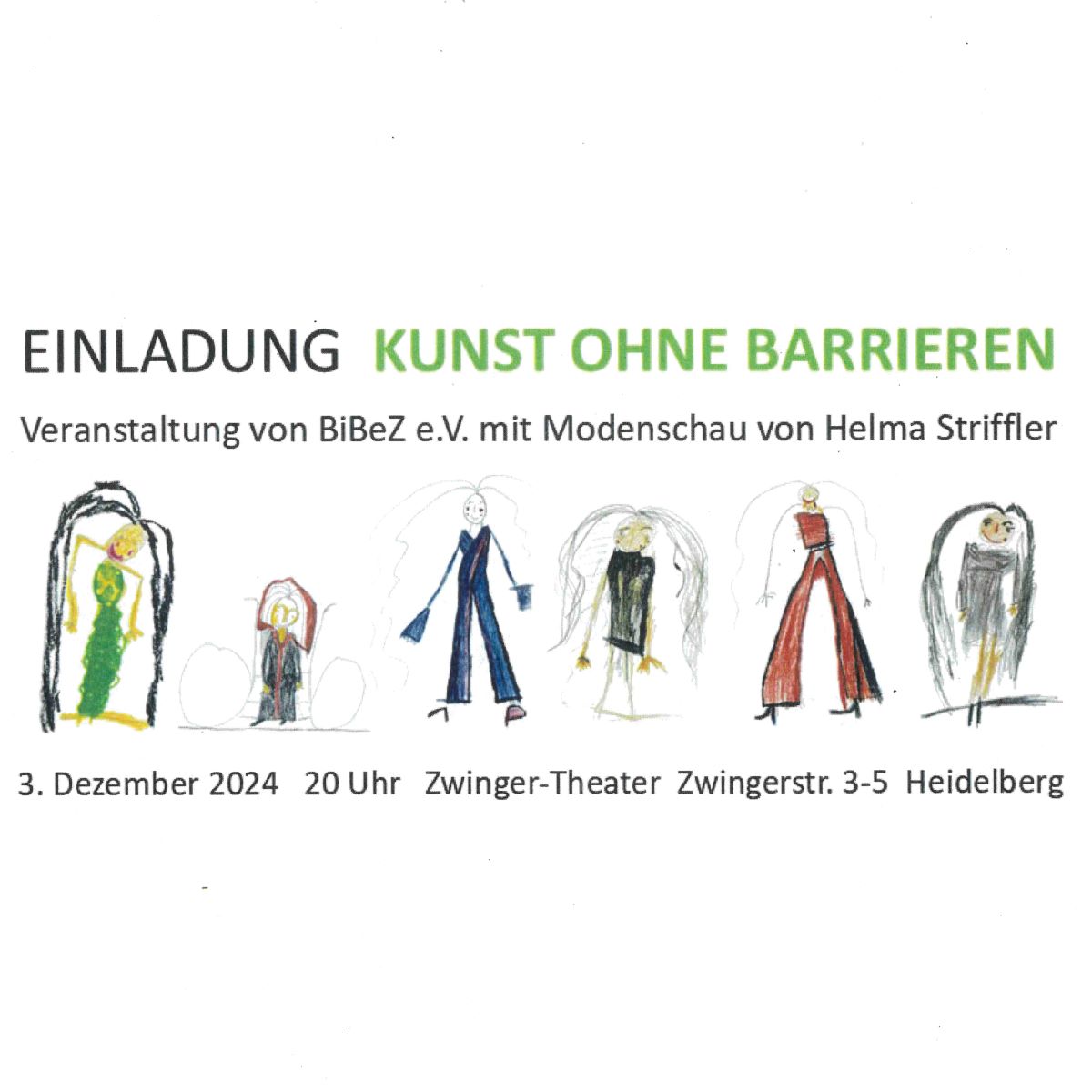 3. Dezember 2024 Dezember 2024 – Modenschau im »Zwingertheater« Heidelberg Als Höhepunkt einer Veranstaltung im Zwingertheater Heidelberg am 3. Dezember 2024, dem Internationalen Tag der Menschen mit Behinderung, zeigt Helma Striffler von ihr entworfene Kleider auf einem echten cat-walk. Sechs Freundinnen von ihr präsentieren als Models in zwei Auftritten zwölf aufregende Outfits aus dem atelier herzblume, auch sie selbst stellt zwei ihrer Kleider einem begeisterten Publikum vor. Einladung Modenschau Zeitungsartikel: Schwetzingen, Kunst ohne Barrieren