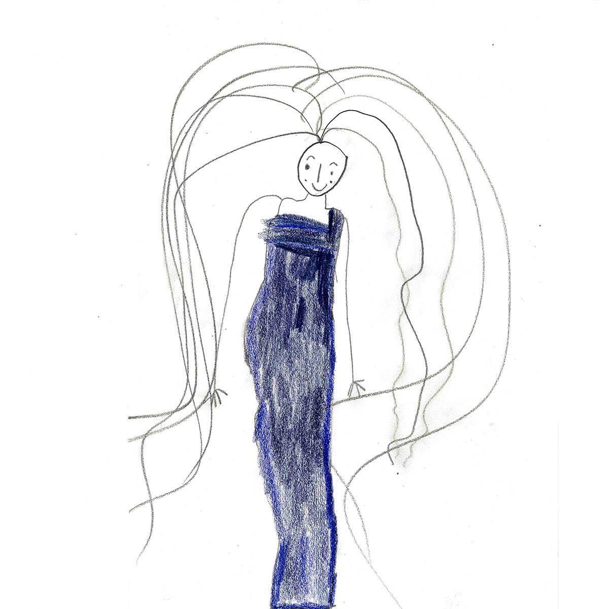 5. August 2021 Dunkelblaues Abendkleid Dunkelblau-schwarz schillerndes Einträger-Kleid mit einer langen, figurnahen Silhouette. Gerader oberer Abschluss. August 2021